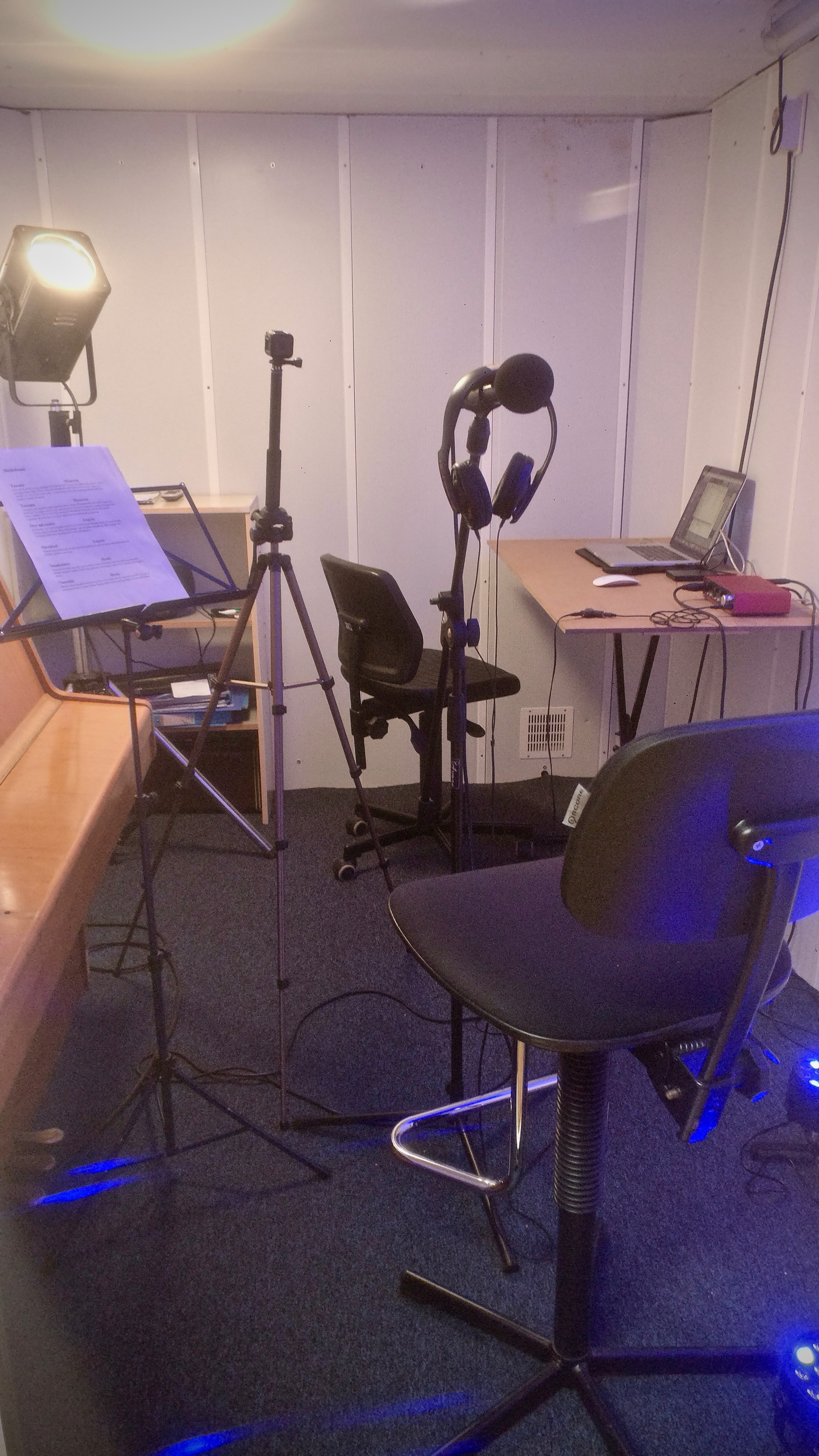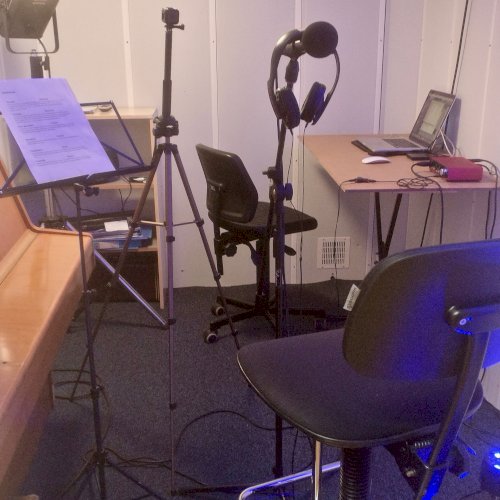 - Geluidsdichte cabine voor opnemen van voice-overs